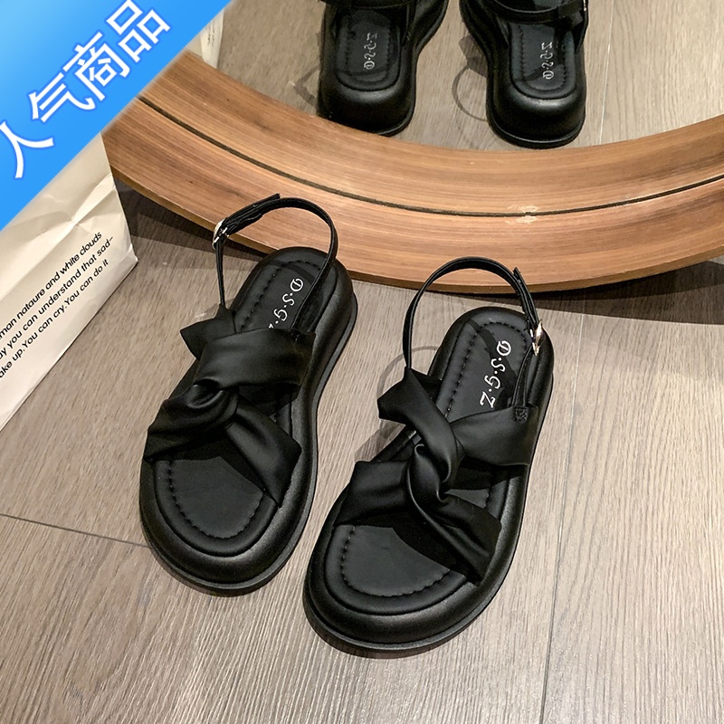 SUNTEK复古森系夏日凉鞋女2023年新款松糕厚底沙滩鞋女海边配裙子罗马鞋 黑色 35标准码数¥71.64热销中 -