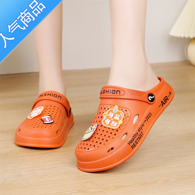SUNTEK网红踩屎感包头拖鞋女夏季2023新款厚底洞洞鞋防滑甜色凉鞋子 橙色 39-40偏小一码¥28.44热销中 -