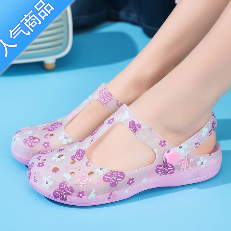 SUNTEK2023轻便防滑夏季洞洞鞋女平底凉鞋护士鞋户外包头大码果冻沙滩鞋 印花10洞洞鞋紫色 37偏小建议拍大一码¥26.10热销中 -