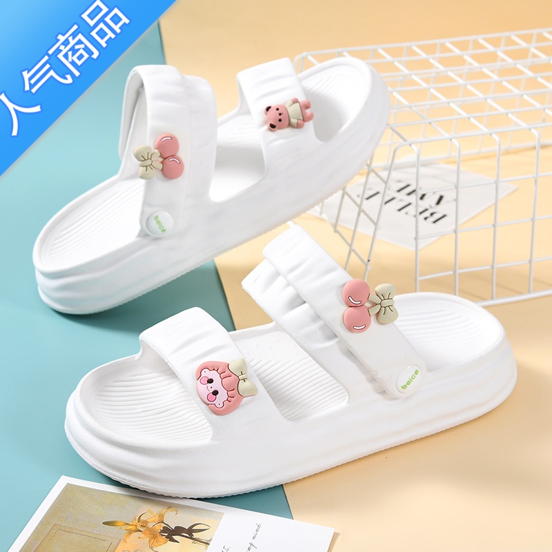 SUNTEK拖鞋女外穿夏季2022新款网红ins潮一字拖软底踩屎感防滑沙滩凉鞋 白色-樱桃小熊 39/40¥66.24热销中 -
