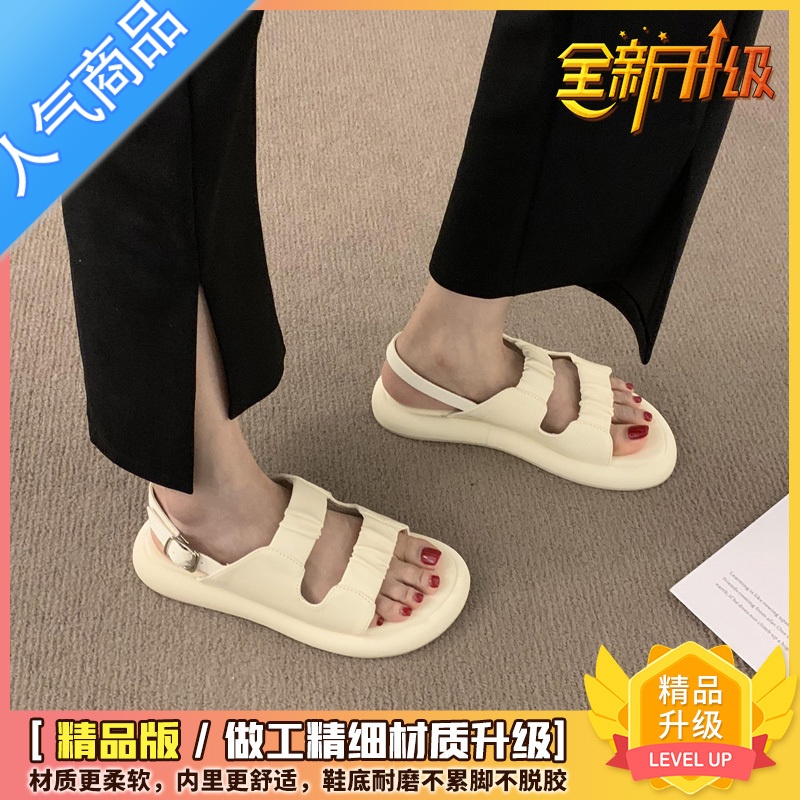 SUNTEK海边度假拖鞋女外穿2023春夏新款仙女风旅行沙滩凉拖两穿罗马凉鞋 米色精品升级版 40标准码数¥46.44热销中 -
