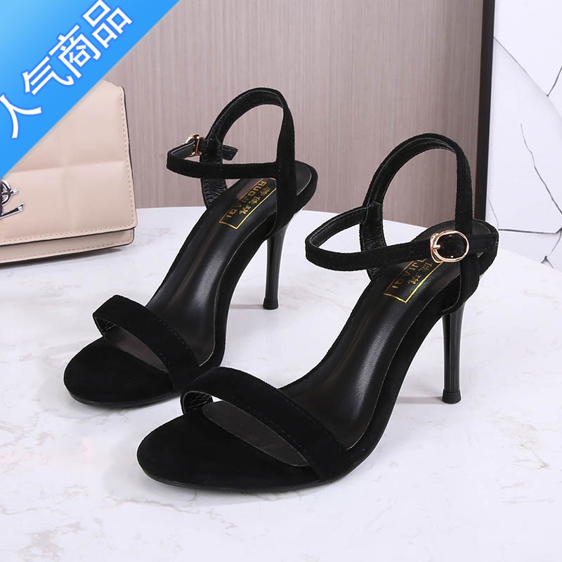 SUNTEK大王一字带细跟凉鞋女后交叉水钻字母性感露趾方头高跟鞋女 黑色9cm 38¥275.00热销中 -