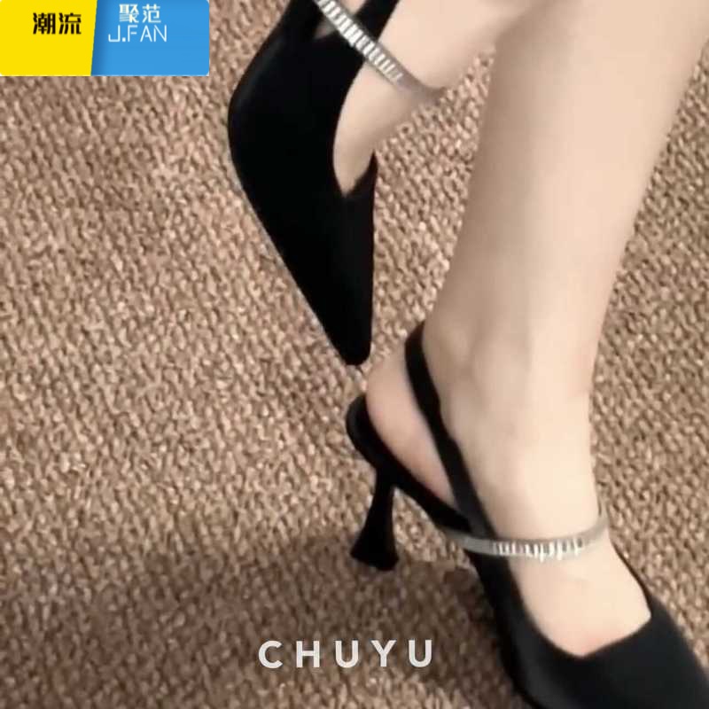 聚范后空黑色高跟鞋气质法式包头凉鞋2024夏季不累脚外穿设计感单鞋女 黑色跟高6厘米现货哦 36¥245.00热销中 -