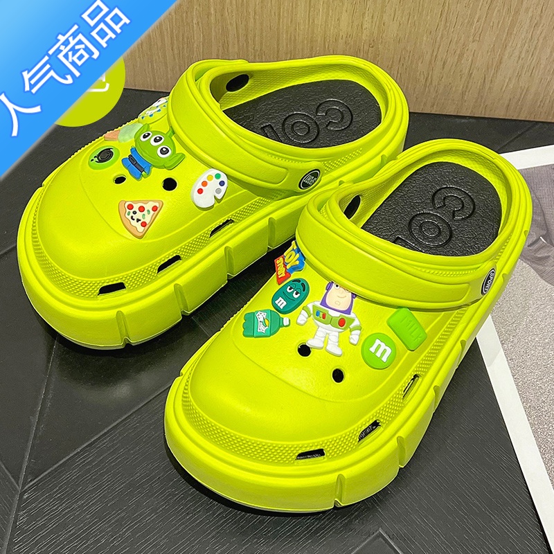 SUNTEK踩屎感洞洞鞋女202年秋夏款女士松糕厚底高跟沙滩鞋包头外穿凉鞋 荧光绿绿色 36-37¥30.00热销中 -