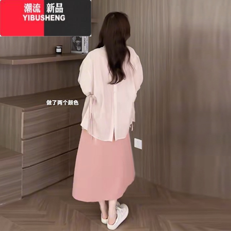 YIBUSHENG法式赫本风粉色衬衫连衣裙女2024新款气质修身显瘦两件套装长衣 55/60kg/L 半身裙单件夏季新品连衣裙/遮肉显瘦连衣裙/今年流行爆款裙子/¥129.00热销中 -