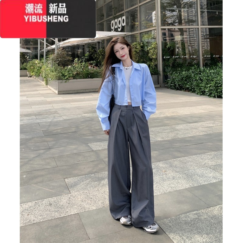 YIBUSHENG网红盐系炸街蓝色长袖衬衫女春季2023新款小众短款单排扣单B网H 均码 蓝色衬衣单件¥49.00热销中 -