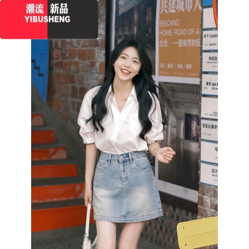 YIBUSHENG装搭配一整套小个子茶系穿搭港风复古chic衬衫牛仔裙子两件套古 XL建议体重115-135斤 白色衬衫+牛仔裙今年流行时尚洋气辣妹休闲气质名媛炸街夏季茶系¥196.00热销中 -