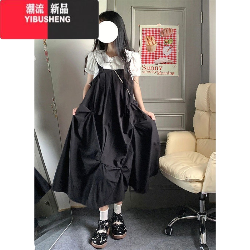 YIBUSHENG两件套装设计感法式甜美减龄中长款背带连衣裙女学生+泡泡袖衬件 M 单件背带裙¥86.00热销中 -