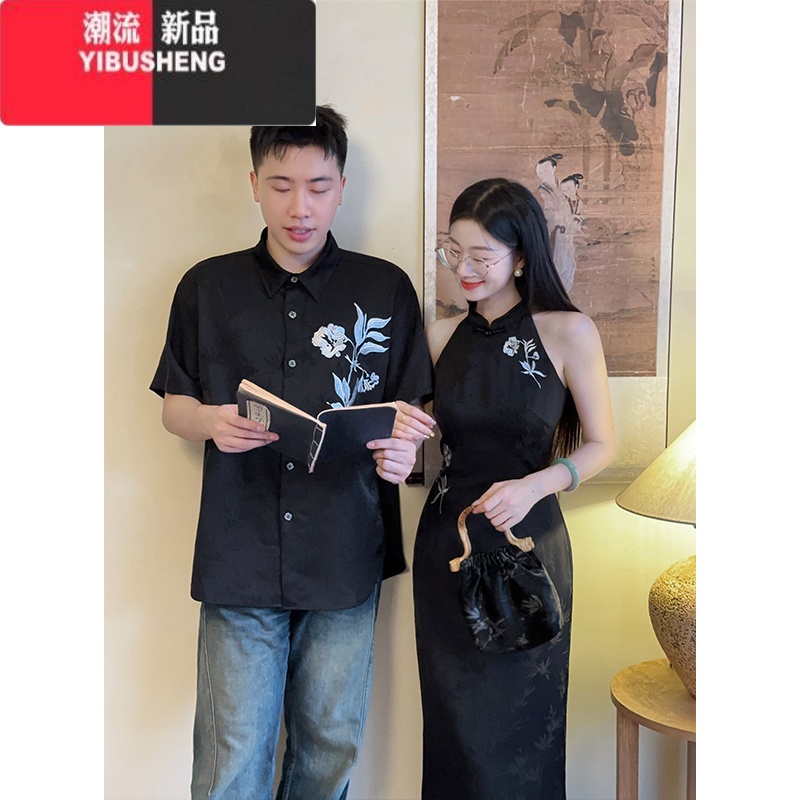 YIBUSHENG一尧【连理枝】新中式提花复古刺绣连衣裙女黑色衬衫情侣U M 衬衫¥232.00热销中 -
