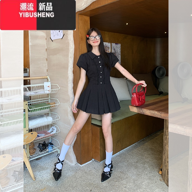 YIBUSHENG学院风白色泡泡袖衬衫连衣裙女季气质收腰小个子甜美短泡 S 黑色¥286.00热销中 -