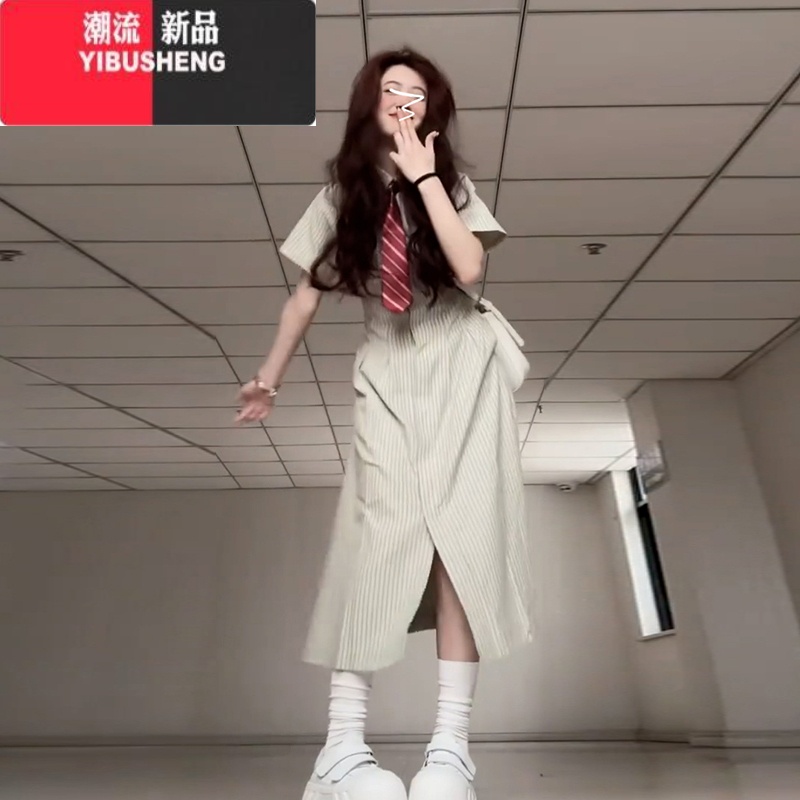 YIBUSHENG学院风条纹衬衫连衣裙子女季2024新款日韩系jk制服百褶短裙套装 40/45kg/S 裙子单件小个子显高时尚/少女感/初恋/清纯/温柔风/奶系穿搭¥93.00热销中 -
