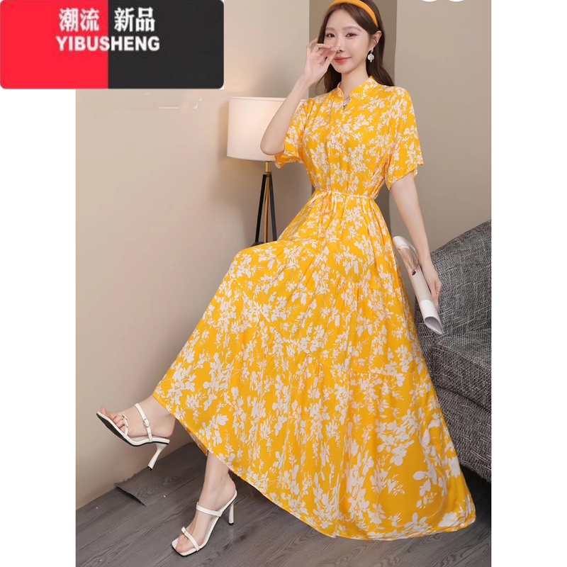 YIBUSHENG季宽松大码碎花棉绸连衣裙衬衫长款系带复古V领遮肉显瘦人造带 均码建议80-160斤 88浅黄¥72.00热销中