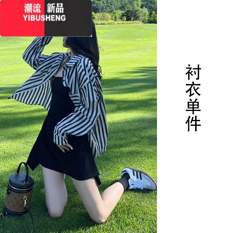 YIBUSHENG不规则黑色抹胸吊带连衣裙2024新款春秋别致收腰显瘦裙子衬衫套别 65/70kg/XXL 条纹衬衣今年流行漂亮/独特高级感超好看/高端精致/网红爆款/¥86.00热销中 -