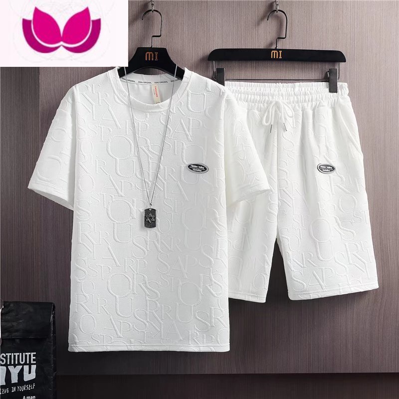 七斓夏季套装男潮流百搭白色休闲短袖t恤华夫格上衣韩版潮流ins五分裤 2XL DHK001白色套装¥88.00热销中 -