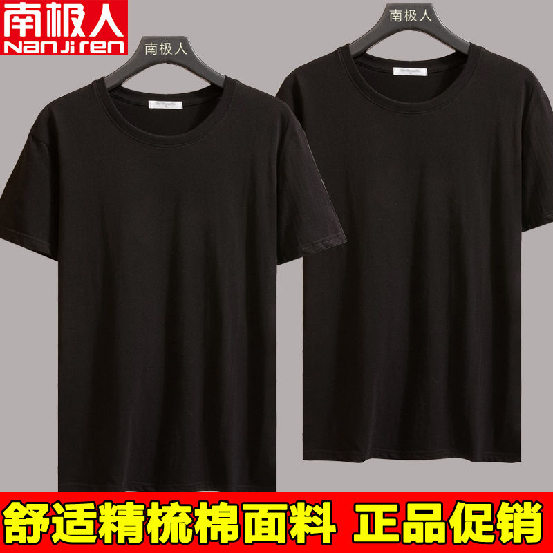 南极人纯棉纯色男士短袖t恤夏季男装半袖打底衫背心黑白灰色 2XL体重150-165斤 纯色黑+黑¥55.00热销中 -