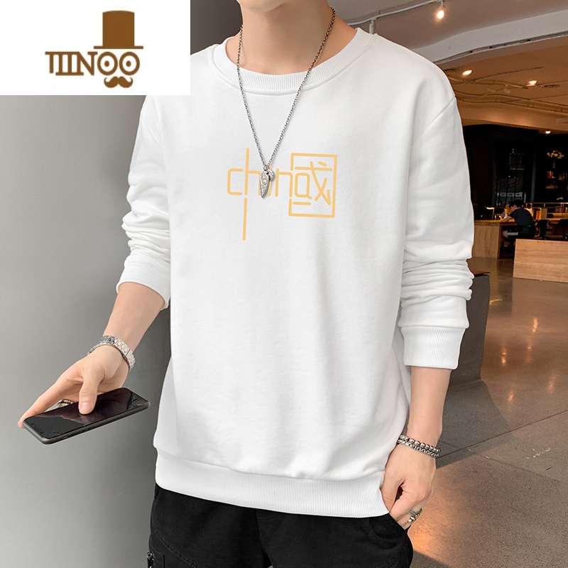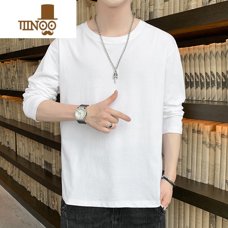 YANXU2023年新款男士长袖t恤国潮印花学生百搭体恤衫男装打底衫 L YX-6001纯色白色¥25.00热销中 -