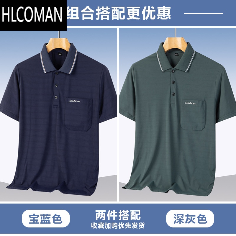 HLCOMAN爸爸短袖T恤冰丝中老年人爷爷夏装中年男装polo衫上衣服夏季夏年 3XL/56码180-200斤 2件装宝蓝+深灰¥124.00热销中