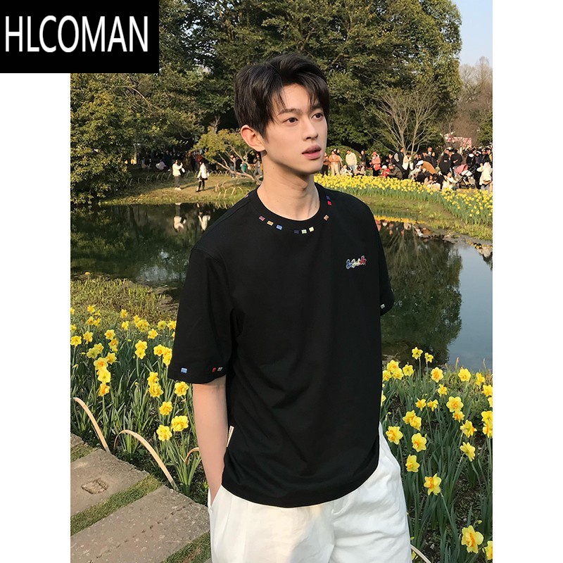 HLCOMAN白色彩虹刺绣t恤男夏季阳光干净男生穿搭短袖美式小领口半生 2XL150-165斤 黑色¥106.00热销中 -