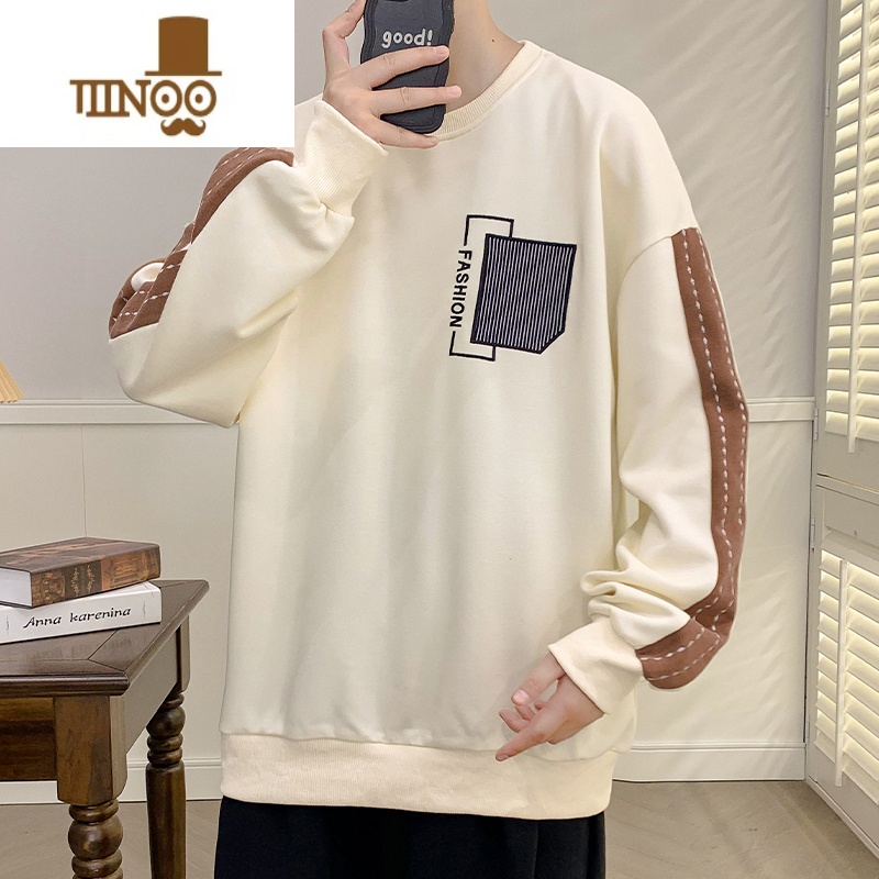 YANXU圆领卫衣男款潮牌宽松长袖t恤帅气休闲秋衣青少年体恤上衣服 XL(约120145斤可穿) 663米色¥106.00热销中 -