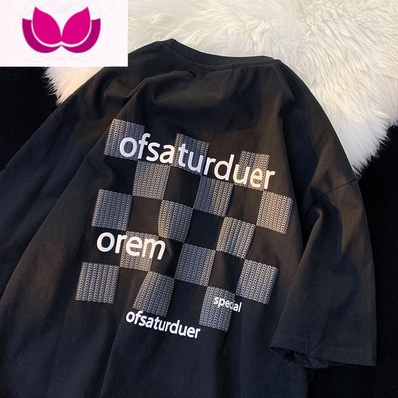 七斓棋盘格字母印花短袖t恤男美式复古高街潮牌宽松半袖体恤古复 3XL160-180斤 黑色3084前后印¥46.00热销中 -