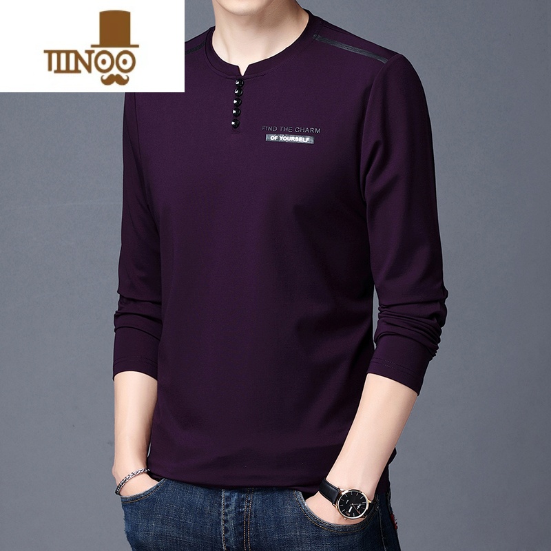 YANXU加肥加大码长袖T恤男士宽松中年丝光棉夏季薄款卫衣圆领纯色速卫 L适合130-150斤 紫色¥70.00热销中 -