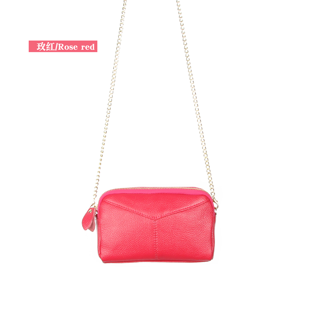 新款真皮手拿单肩斜挎包车缝线大容量链条牛皮包晚宴包女包 玫红领券满30用10¥89.00热销中 -