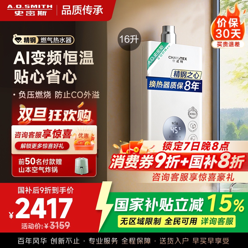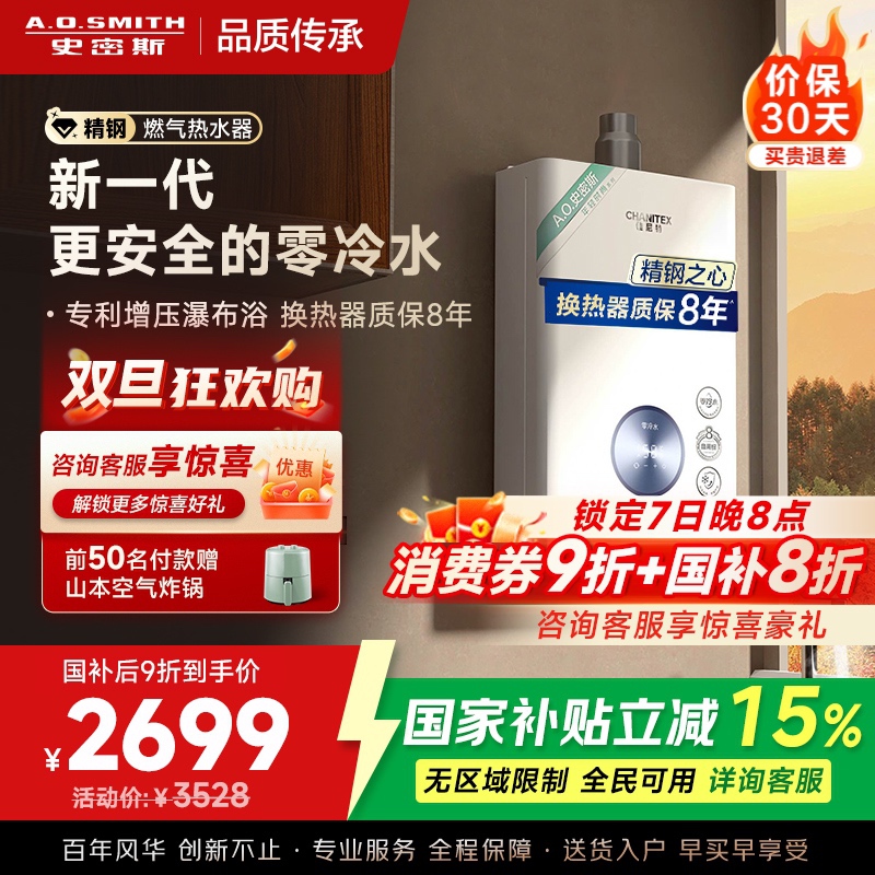 自营 AO史密斯佳尼特 1级能效16L零冷水燃气热水器 JSLQ28-TJ3赠品¥4999.00热销中14204评价 99.0%好评 -