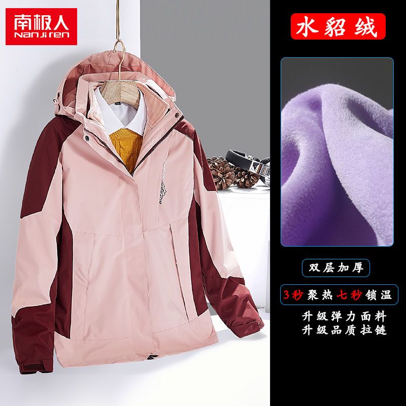 南极人春秋冬冲锋衣女三合一可拆卸两件套男外套大码加绒加厚 L 粉酒红+绒¥292.00热销中 -