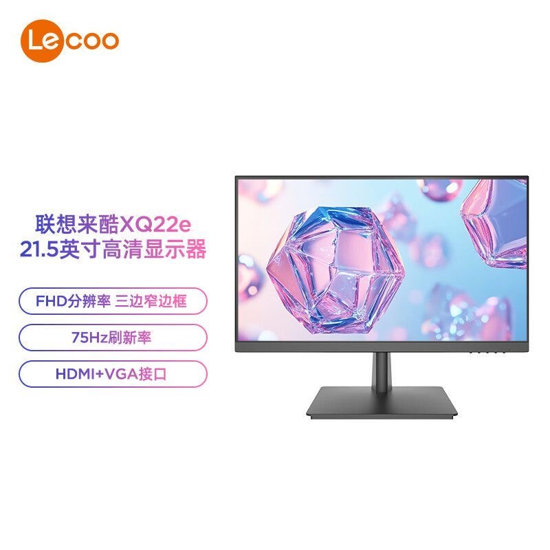 Lecoo联想21.5英寸75hz高清VA面板窄边框液晶屏幕XQ22e显示器¥409.00热销中 -