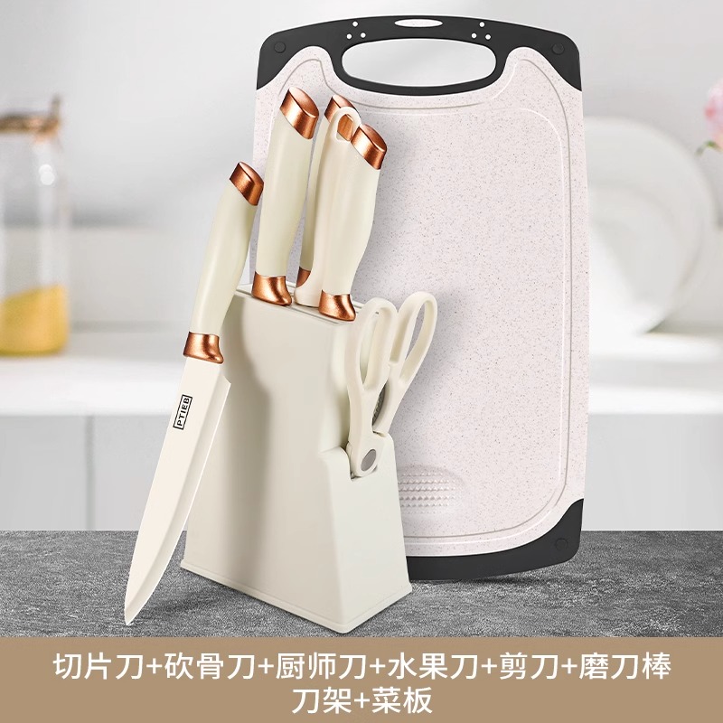 米白金圈刀具套装 【抗菌防锈】小麦刀具七件套+小麦菜板(含刀座)¥79.80热销中 -