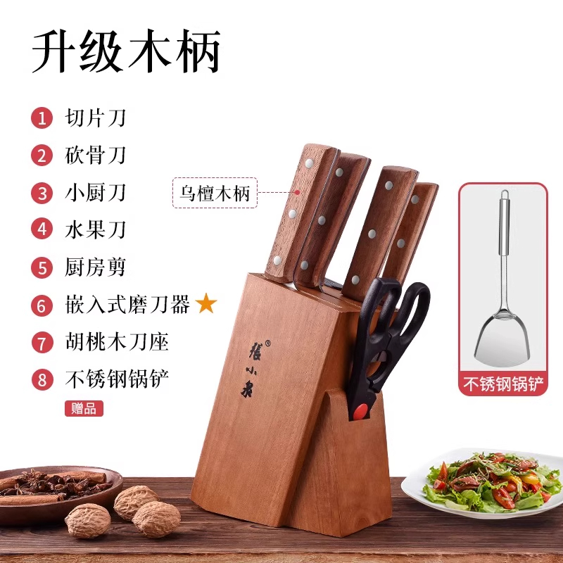 张小泉名刃系列刀具厨房套装菜刀家用水果刀切片斩骨木柄六件7163 名刃系列-木柄刀具六件套+锅铲¥202.96热销中 -