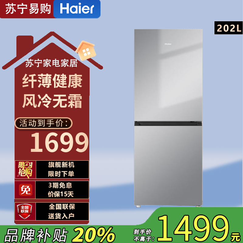 海尔202升家用冰箱双开门风冷无霜小型电冰箱双门节能省电 租房两门冰箱除菌保鲜净味¥1488.00月销量5166评价 100.0%好评 -