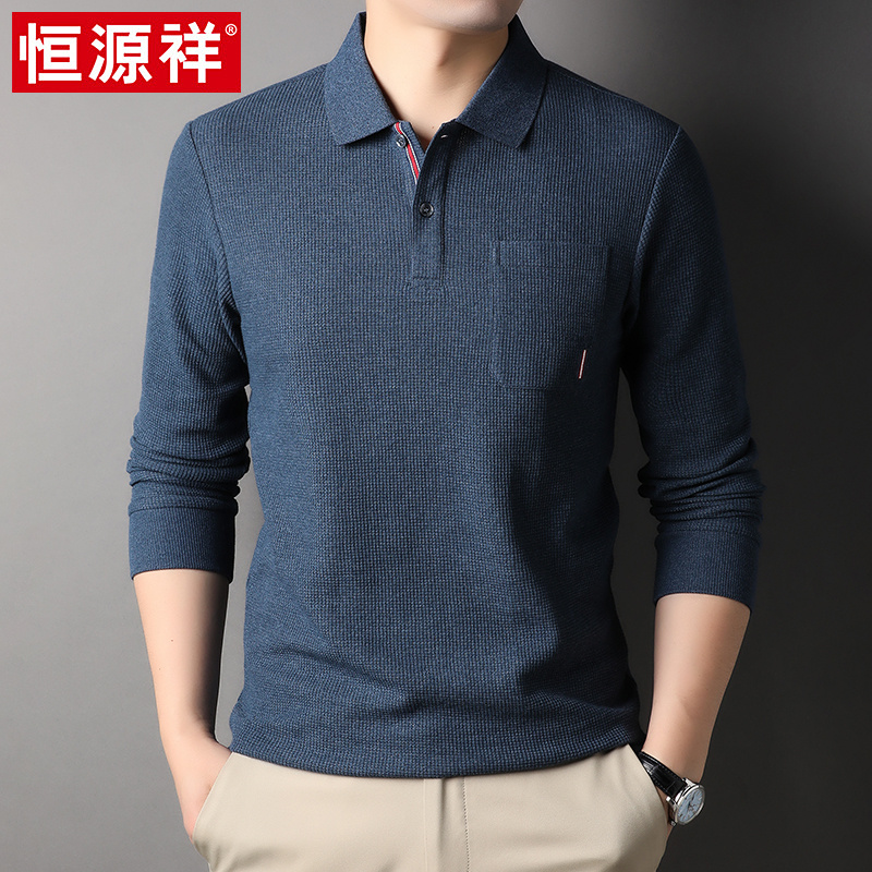 恒源祥男士长袖t恤春秋华夫格polo衫中年爸爸装翻领商务休闲衣服 165/M体重100斤-120斤 蓝色¥263.00热销中 -