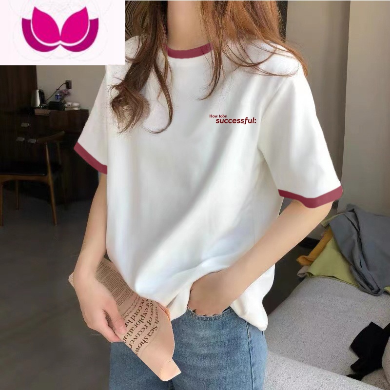 七斓2023新款显瘦短袖T恤女时尚百搭宽松拼色上衣韩版正肩打底衫 XL适合126-138斤 红领-(红)SUCCE字母领券满99用2¥43.00热销中