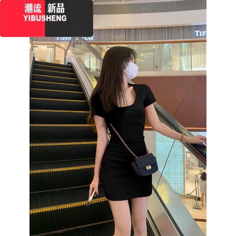 YIBUSHENG纯欲风辣妹粉色短袖连衣裙女季u领t恤裙子修身收腰包臀性感短欲 L 黑色¥48.00热销中 -