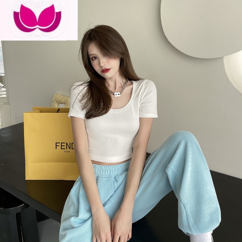 七斓夏季新款辣妹方领短款T恤女纯色高腰紧身弹力短袖小性感色小纯纯 均码 白色领券满99用2¥29.00热销中 -