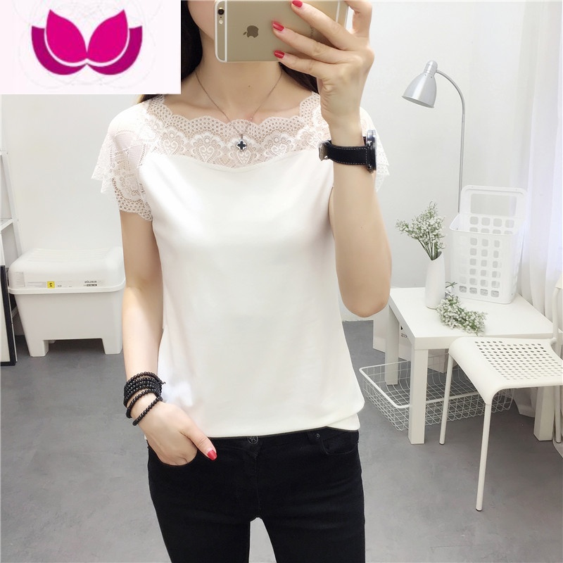 七斓复古一字肩蕾丝超仙 短袖女t恤网红衣服女 街拍款chic上衣短 XXL 白色006领券满99用2¥16.00热销中 -