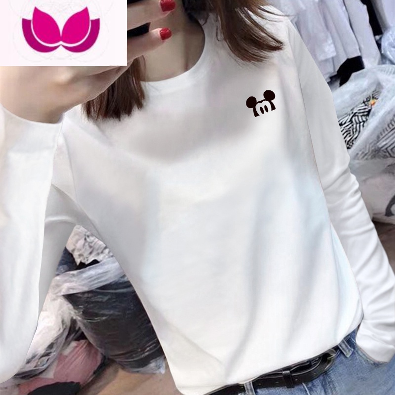 七斓ins上衣正肩白色米奇t恤女长袖打底衫内搭体恤洋气百搭潮 S80-95斤 白色大眼米奇领券满99用2¥70.00热销中 -