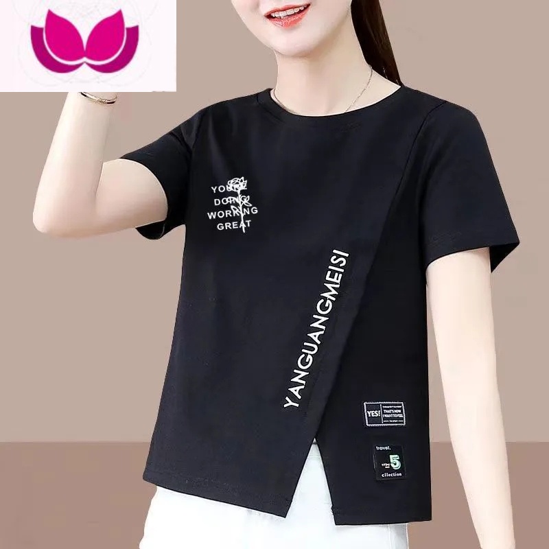 YIBUSHENG黑色短袖t恤女2024新款季女士正肩显瘦小众独特别致上衣小 L115-125斤 NI侧边黑色230g高质量版¥45.00热销中 -