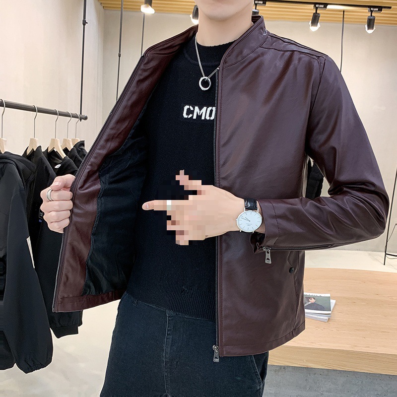 JPDUN时尚外套跨境皮衣男士新款春秋季外套时尚皮夹克_443 XL 酒红色¥118.00热销中