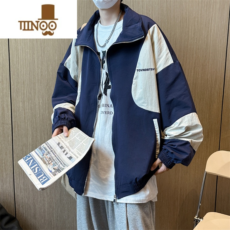 YANXU美式复古拉链拼接飞行员夹克男立领潮牌百搭宽松工装外套男生秋装 XL J103藏青色¥108.00热销中 -