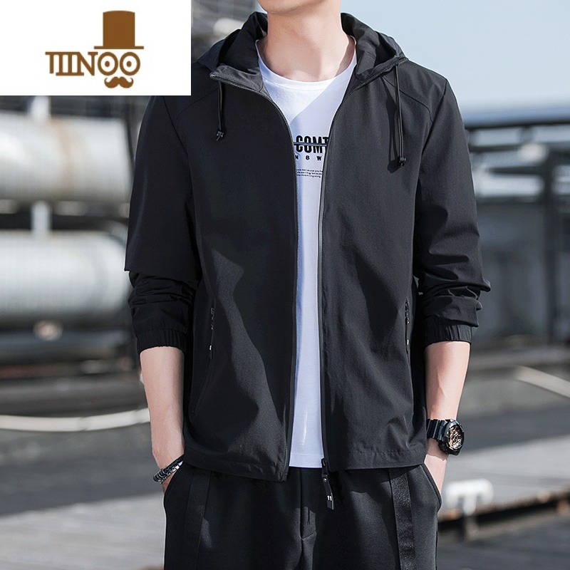 YANXU连帽男士夹克外套薄款青年上衣潮流休闲黑色茄克2023加外 3XL 黑色¥88.00热销中 -