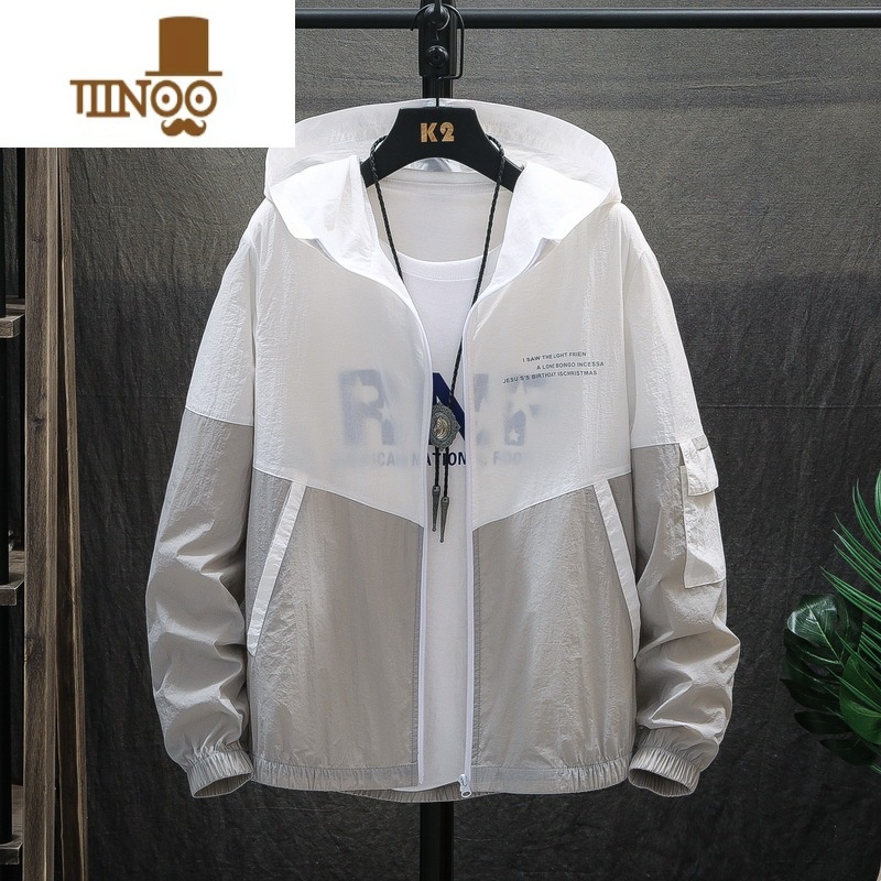 YANXU冰丝防晒衣男士夏季薄款透气连帽钓鱼骑行休闲户外男款夹克外套 L90-100斤 501上白下灰¥36.00热销中 -