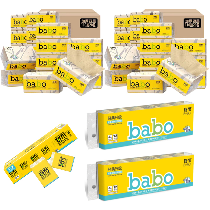 斑布(Babo)卷纸12卷+抽纸16包组合(BJPJ165A12+BWR90F16)/组 纸巾餐巾纸本色卫生纸竹浆¥103.90热销中 -