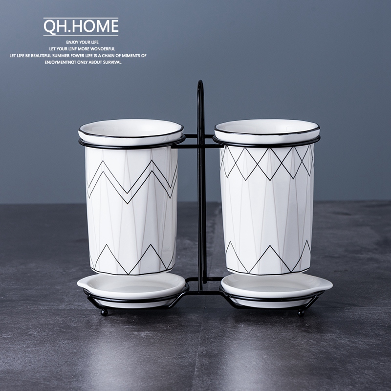 钻石陶瓷筷子架家用沥水筷子筒双筷子桶筷子笼厨房收纳筷盒 敬平 波纹-钻石双筒¥42.00热销中 -
