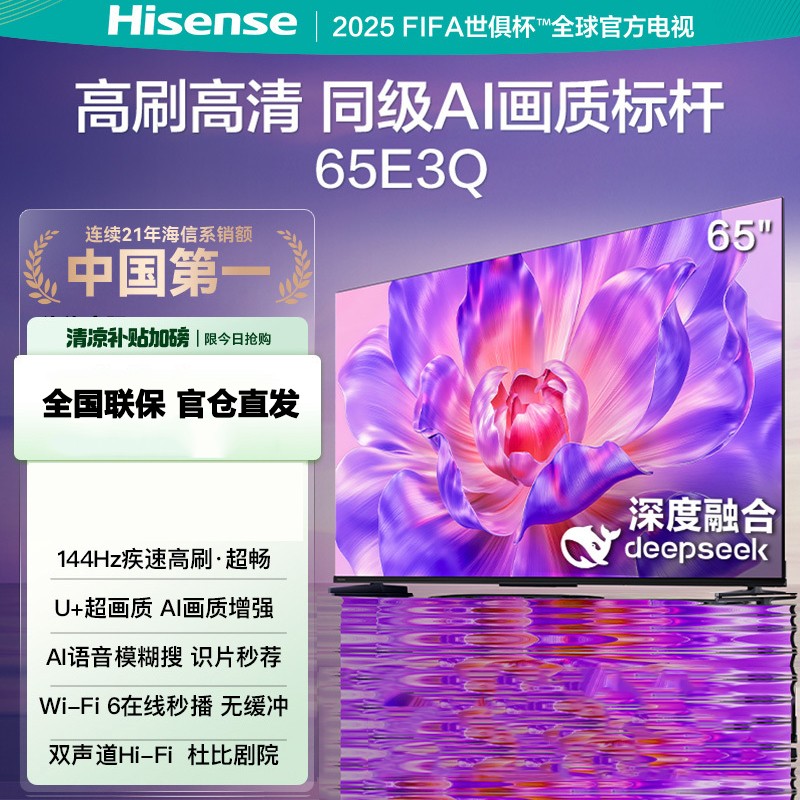 海信(Hisense)65E3Q 65吋智能电视¥2539.00月销量491评价 100.0%好评 -
