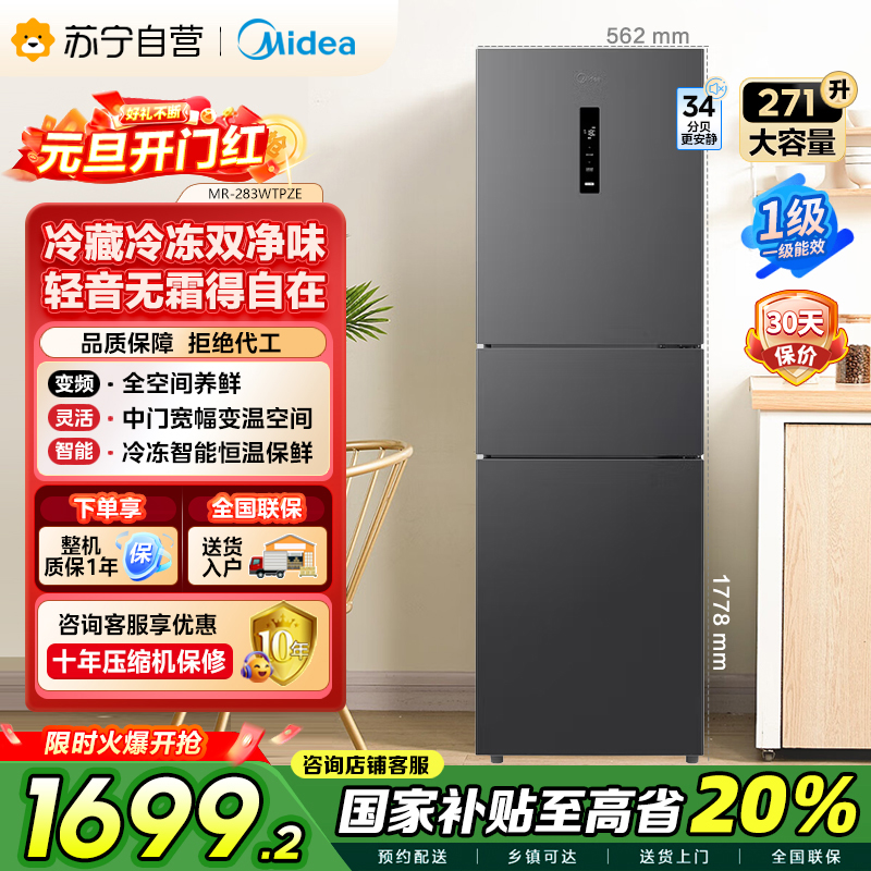 自营 美的 冰箱 MR-283WTPZE 炭灰-月夜¥2224.00月销量1402356评价 99.0%好评 -