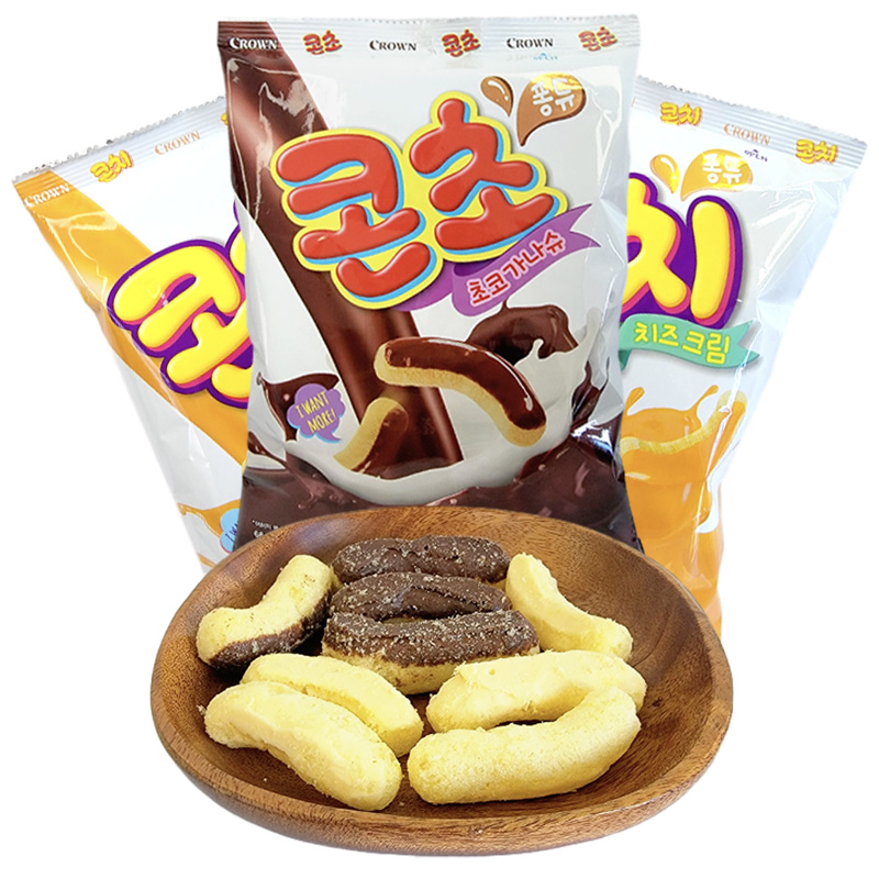 韩国CROWN克丽安膨化条袋装66g芝士味巧克力味休闲零食品午后点心 克丽安膨化条 随机66g*2袋(可备注)¥21.80热销中 -