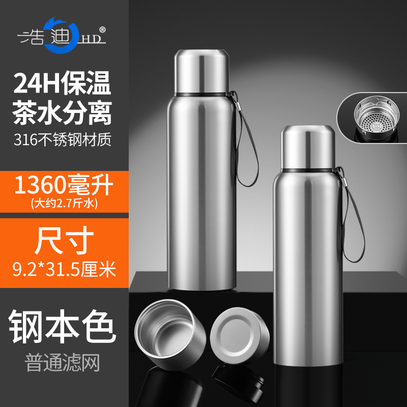 全钢316不锈钢大容量保温水杯子男便携户外健身茶水分离水壶温度 普通滤网款1360毫升-银色 均码¥62.00热销中 -