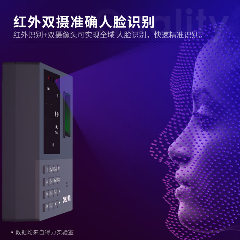 自营 得力(deli) 人脸指纹双识别考勤机 600枚指纹+200张人脸存储容量 2.4英寸液晶屏 AH101¥598.80热销中 -